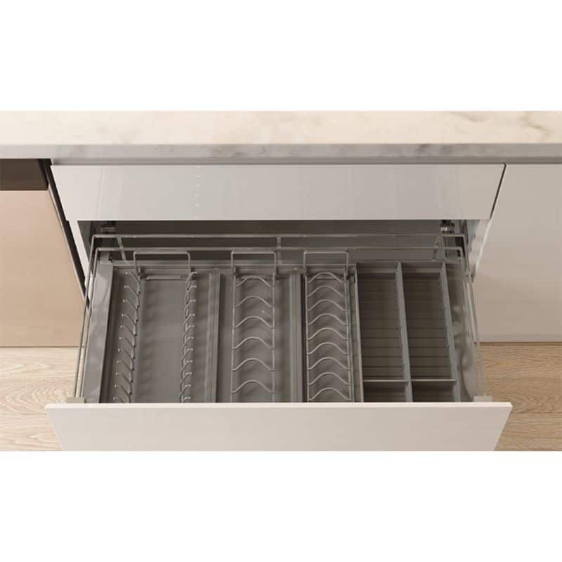 Vớichiều rộng tủ 600mm vàchiều sâu lọt lòng 450mm, kệ đựng bát đĩa Hafele Kason Flex dễ dàng lắp đặt vừa hầu hết các loại tủ bếp hiện đại. Ngay cả những căn bếp có diện tích hạn chế cũng có thể tận dụng triệt để không gian lưu trữ bên trong ngăn kéo.