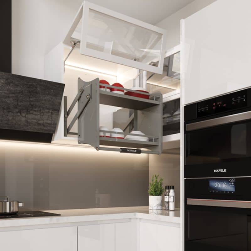 Được thiết kế chuyên biệt cho khoang tủ có kích thước phủ bì 900mm, Giá bát nâng hạ Oria Hafele 504.76.818 không chỉ là một phụ kiện, mà là giải pháp nâng cấp trải nghiệm bếp núc chuẩn Châu Âu.
