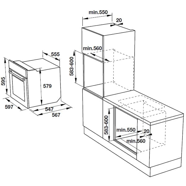 - Kích thước hộc tủ ( C x R x S ): 560 x 560 x 600 mm