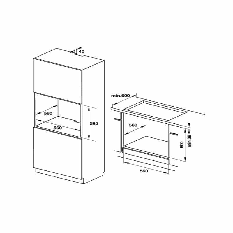 - Kích thước hộc tủ: 595C x 560R x 560S mm